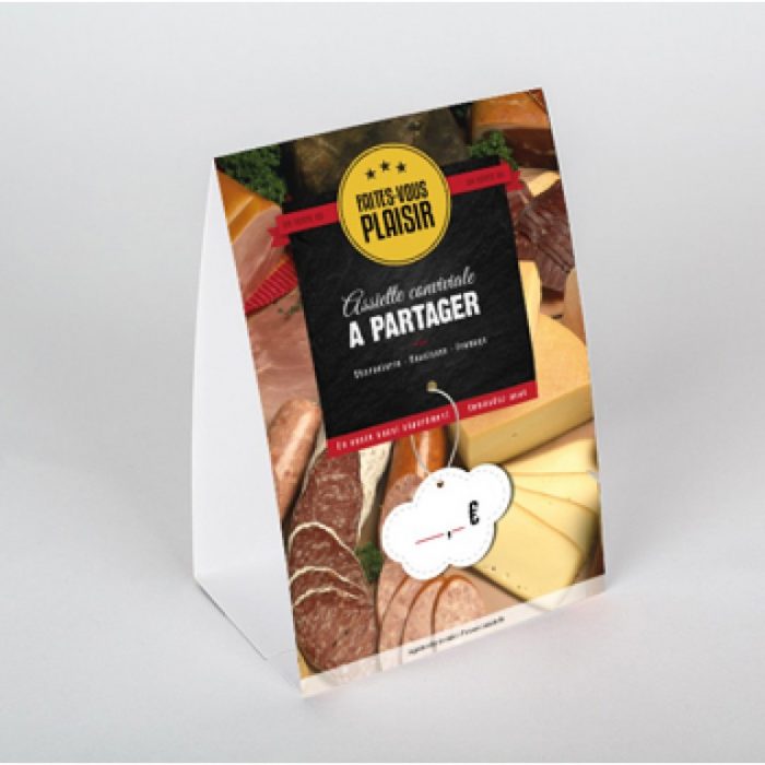 Avec nos chevalets de table personnalisés, n’importe quelle table ou comptoir vous permettra de faire votre promotion. Offrant un rendu impeccable, ils mettent en valeur votre image de marque de façon cohérente et professionnelle. Sublimez votre graphisme grâce à 3 types de papiers, dont une option laminée Soft touch de haute qualité. Vous avez également le choix entre 2 formats, pour afficher exactement la quantité d’informations dont vous avez besoin. Si vous cherchez un style sobre sans vouloir renoncer aux détails, utilisez notre générateur de codes QR pour donner directement accès à votre menu ou votre site web.