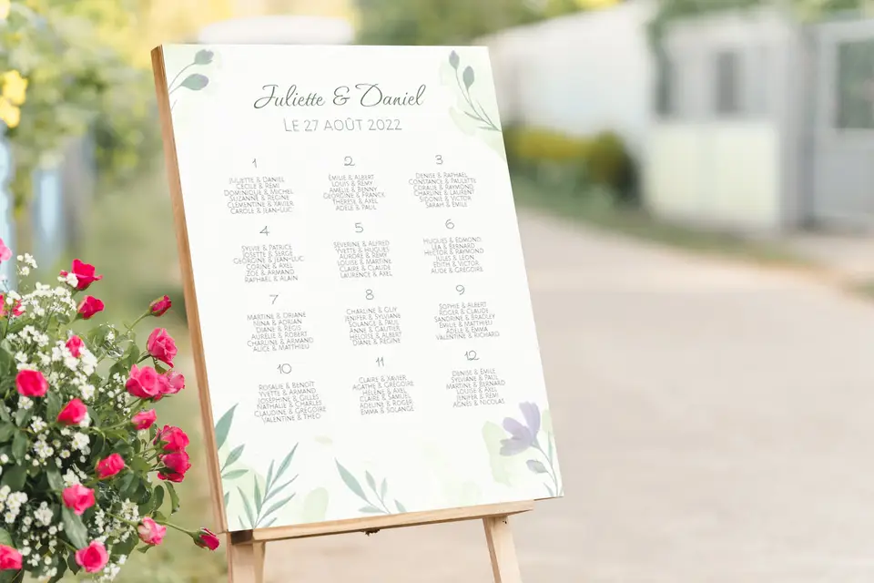 Merci beaucoup pour mon tableau de mariage ! La commande à été traitée en 1 semaine, l’équipe Biotaprint vous écoute réellement ! J’ai adoré mes tableaux de présentation et les cartes des menus ! Merci encore !!